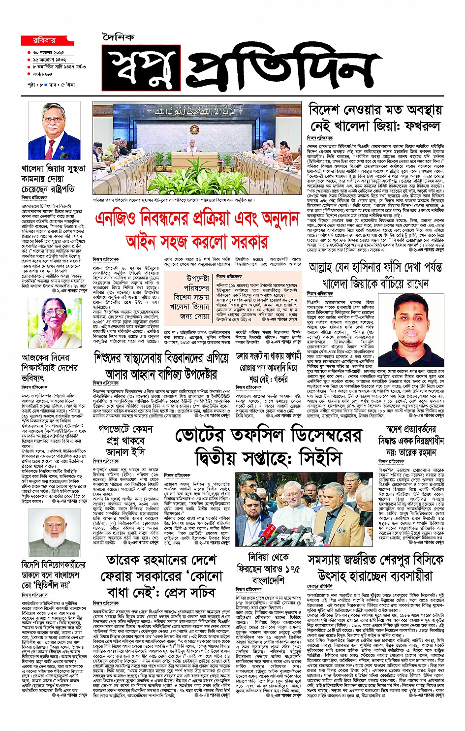 সকল পাতা « < ১২৩৪ » আজকের পত্রিকা → প্রথম পাতা→ ২য় পাতা→ ৩য় পাতা→ ৪র্থ পাতা → শেষ পাতা অনলাইন সংস্করণ